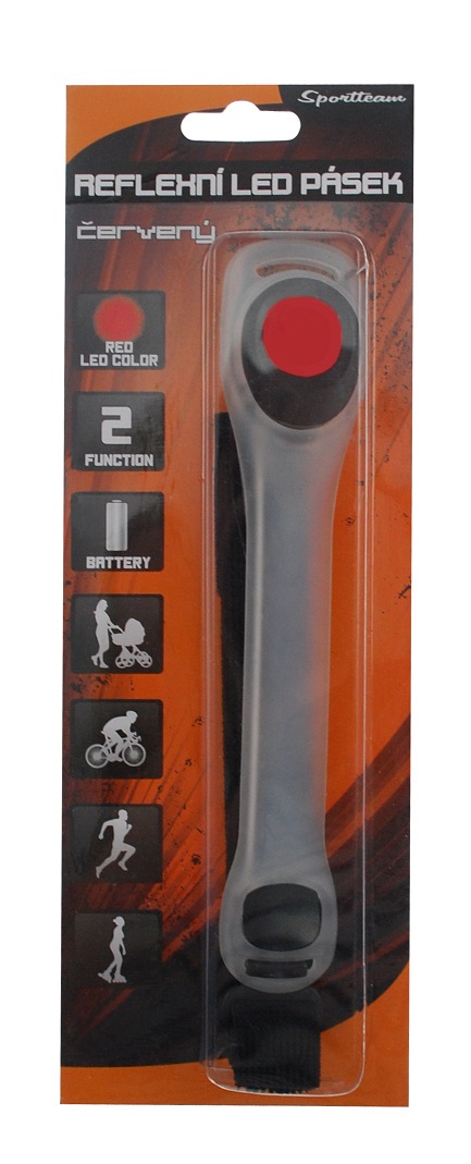 Reflexní LED pásek je vhodný pro outdoor aktivity. lze ho připnout na ruku nebo na nohu pomocí pružného pásku se suchým zipem.